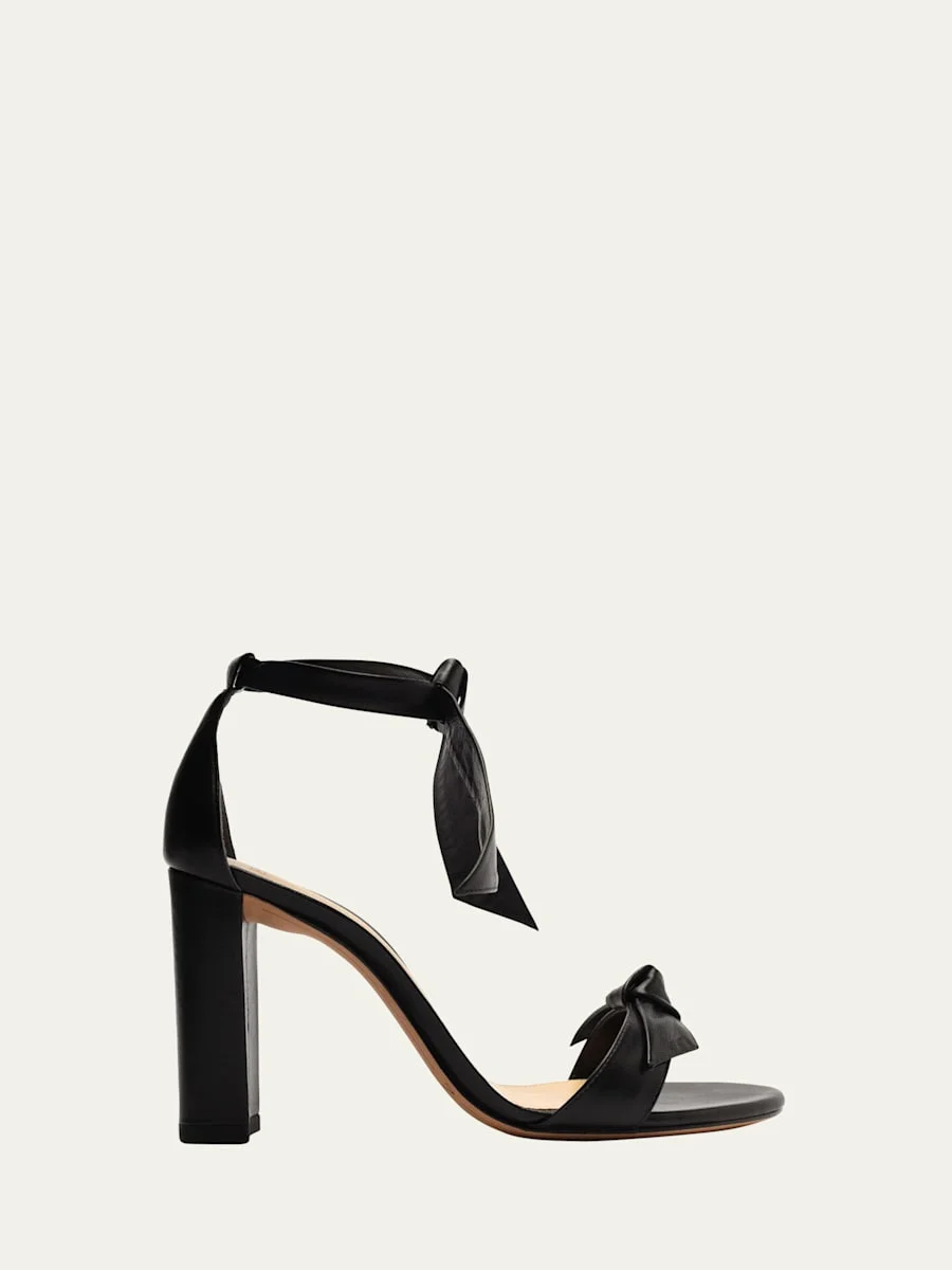 Alexandre Birman leather city sandal. 3.50 in / 90 mm block heel. Knotted strap bands open toe. Self-tie ankle wrap. Leather outsole. "Clarita" is made in Brazil. Online Inquiries: BGS21_X5ZV1| Store Inquiries: #4446614