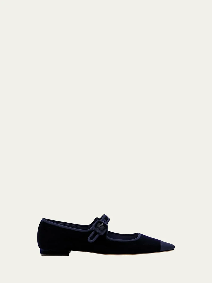 Exuding timeless elegance with a modern twist, the "Jada" flats by Alexandre Birman feature a plush velvet upper with a grosgrain toe cap and trim for a sophisticated contrast 0.50 in / 15 mm flat heel Pointed cap toe Mary Jane buckle strap Leather lining and outsole Professional cleaning recommended Made in Italy Online Inquiries: BGS21_X7CWE| Store Inquiries: #5414589