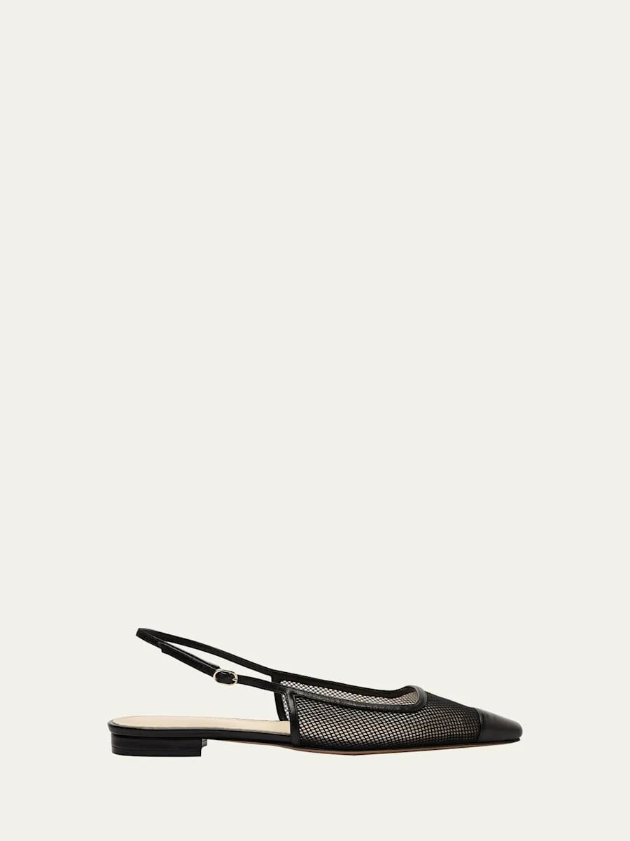 Alexandre Birman "Olivia" mesh net and leather ballerina flats 0.50 in / 15 mm flat heel Pointed cap toe Slingback buckle strap Leather outsole Lining: Leather Professional cleaning recommended Made in Italy