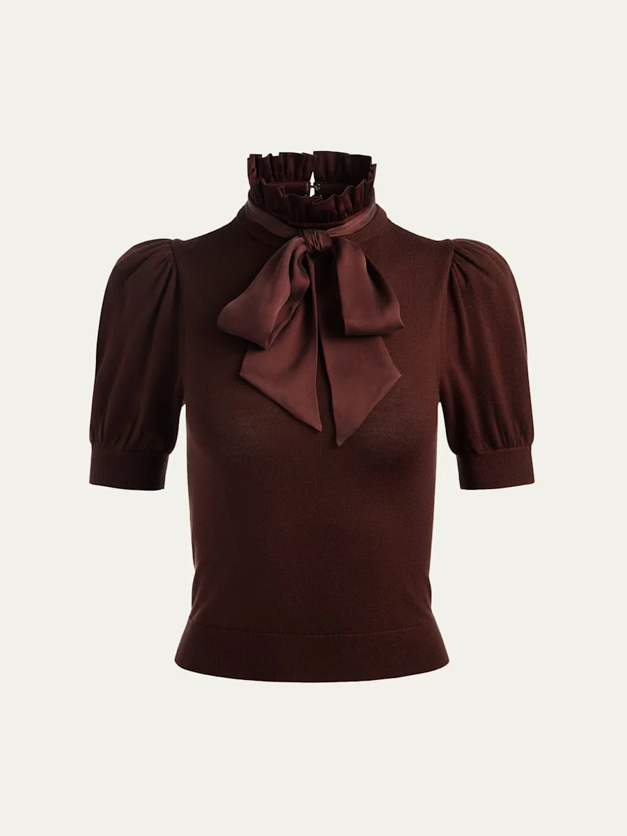 Chase Puff-Sleeve Ruffle-Neck Sweater