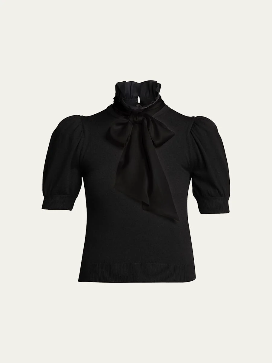 Chase Puff-Sleeve Ruffle-Neck Sweater