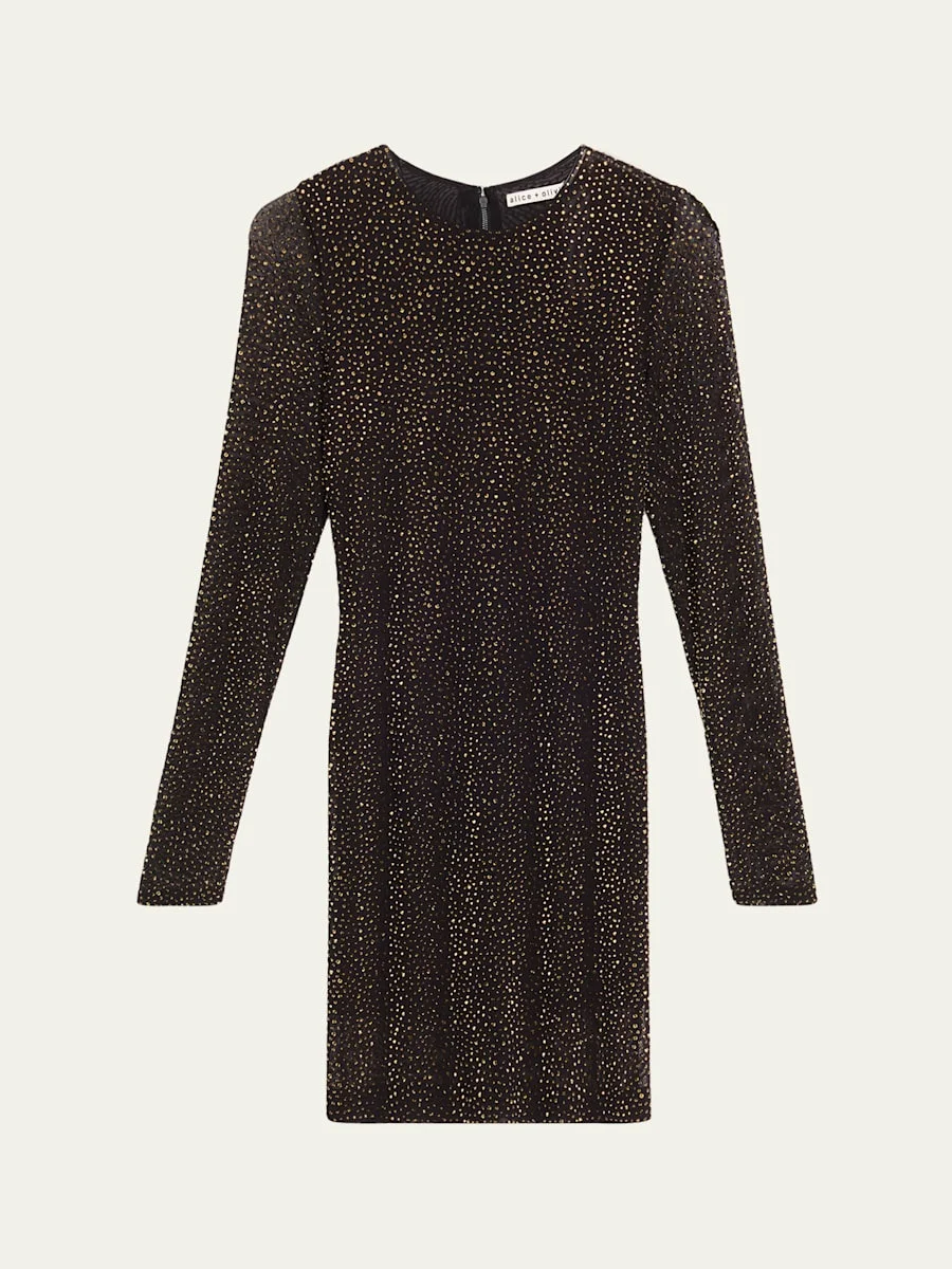 A statement-making piece ideal for a night out, the "Delora" dress by Alice + Olivia is made from crystal-embellished mesh Approx. 33"L from shoulder to hem Crew neckline Long sleeves Hem falls above the knee Bodycon fit Center back zipper Nylon/polyamide/elastane/glass Lining: Nylon Imported Online Inquiries: BGS21_T8W0D| Store Inquiries: #5456377