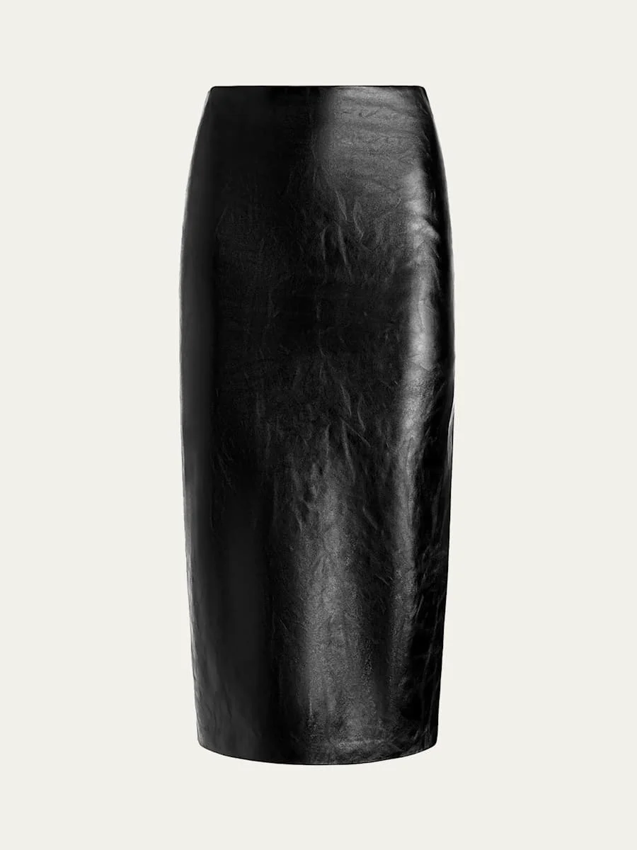 Alice + Olivia's "Maeve" midlength skirt is crafted from smooth vegan leather (PU/viscose) High waist Thighhigh side slit Full length Pencil style Center back zipper Polyurethane/viscose Lining: Recycled polyester Dry clean Imported
