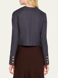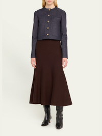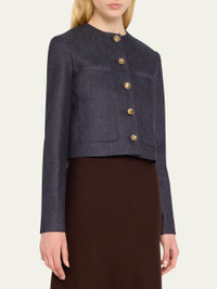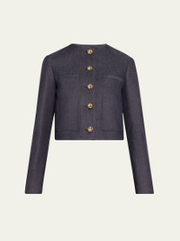 Altuzarra "Bernadette" denim jacket Round neckline; button front Long sleeve; button cuffs Patch pockets Slim fit Cotton/polyurethane Dry clean Made in Italy Model is 5'10"/177cm. Online Inquiries: BGS21_B9BLH| Store Inquiries: #4830194
