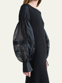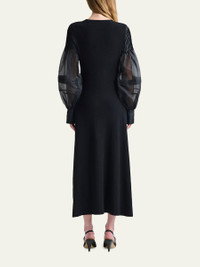 Accented with voluminous sheer sleeves, the "Carino" dress by Altuzarra is crafted from luxurious silk with a midi-length silhouette. Crew neckline Long sleeves with button cuffs Slim silhouette Hem falls below the knee Slipover style Silk Dry clean Made in Italy Online Inquiries: BGS21_T8Y9U| Store Inquiries: #5486501