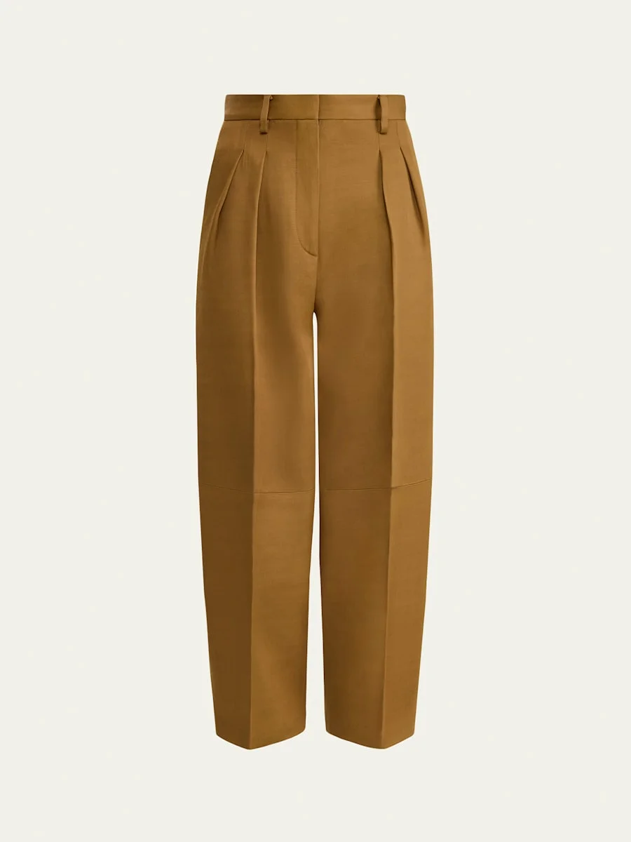 Altuzarra "Dash" pants featuring a double pleated front High rise Angled side slip pockets Wide legs Cropped at the ankle Hook/zip fly; belt loops Viscose/wool Dry clean Made in Italy