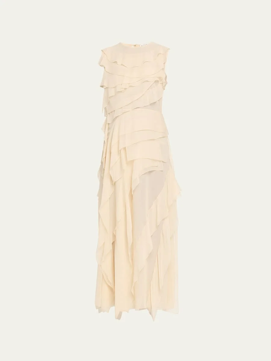 Gigi Sleeveless Ruffled Silk Maxi Dress