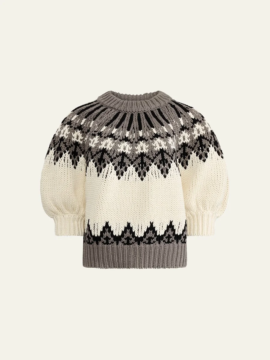 Marty Fair Isle Short Puff-Sleeve Sweater