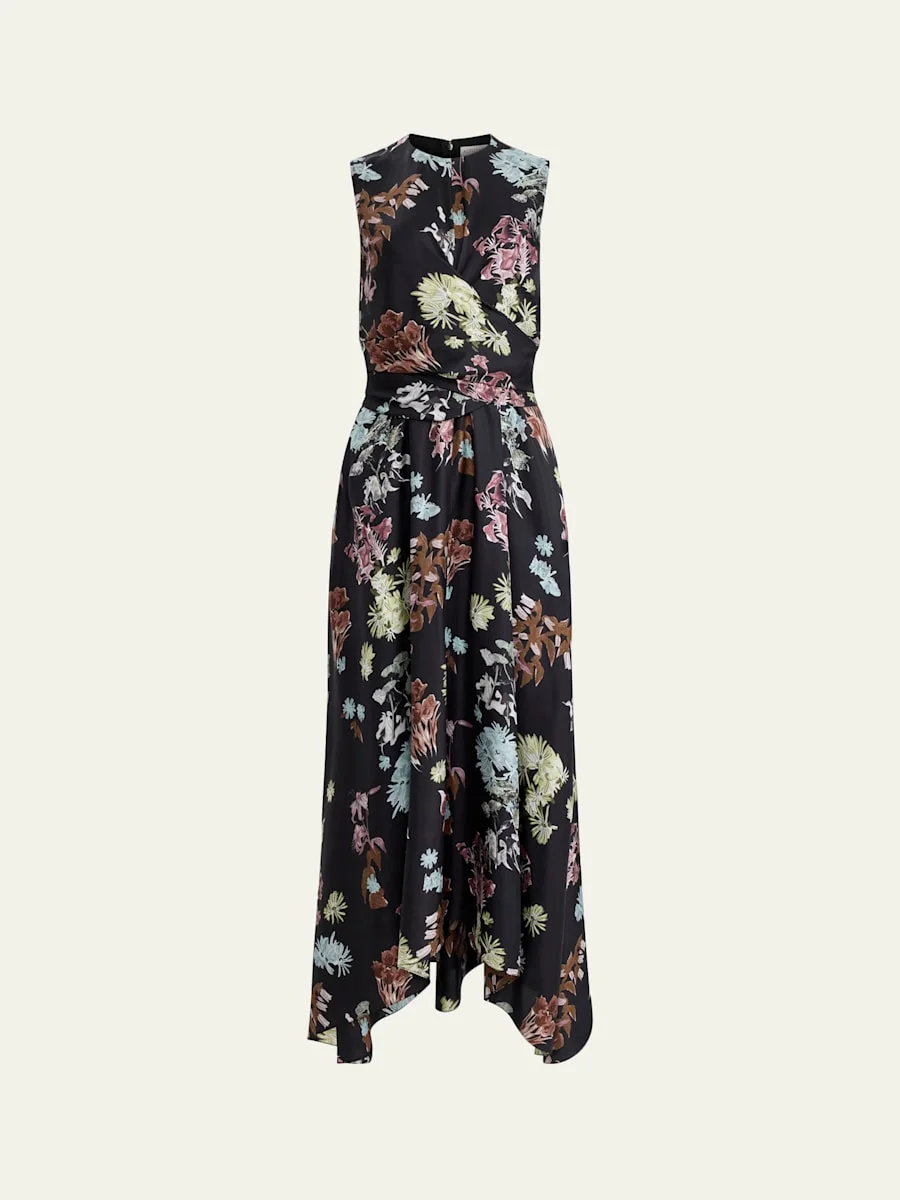 The "Penny" dress by Altuzarra is designed with a fitted top, a waist accentuating selfwrap tie, and a voluminous skirt Round neckline Sleeveless Side seam pockets Full length Aline silhouette Invisible back zipper Silk Dry clean Made in Italy
