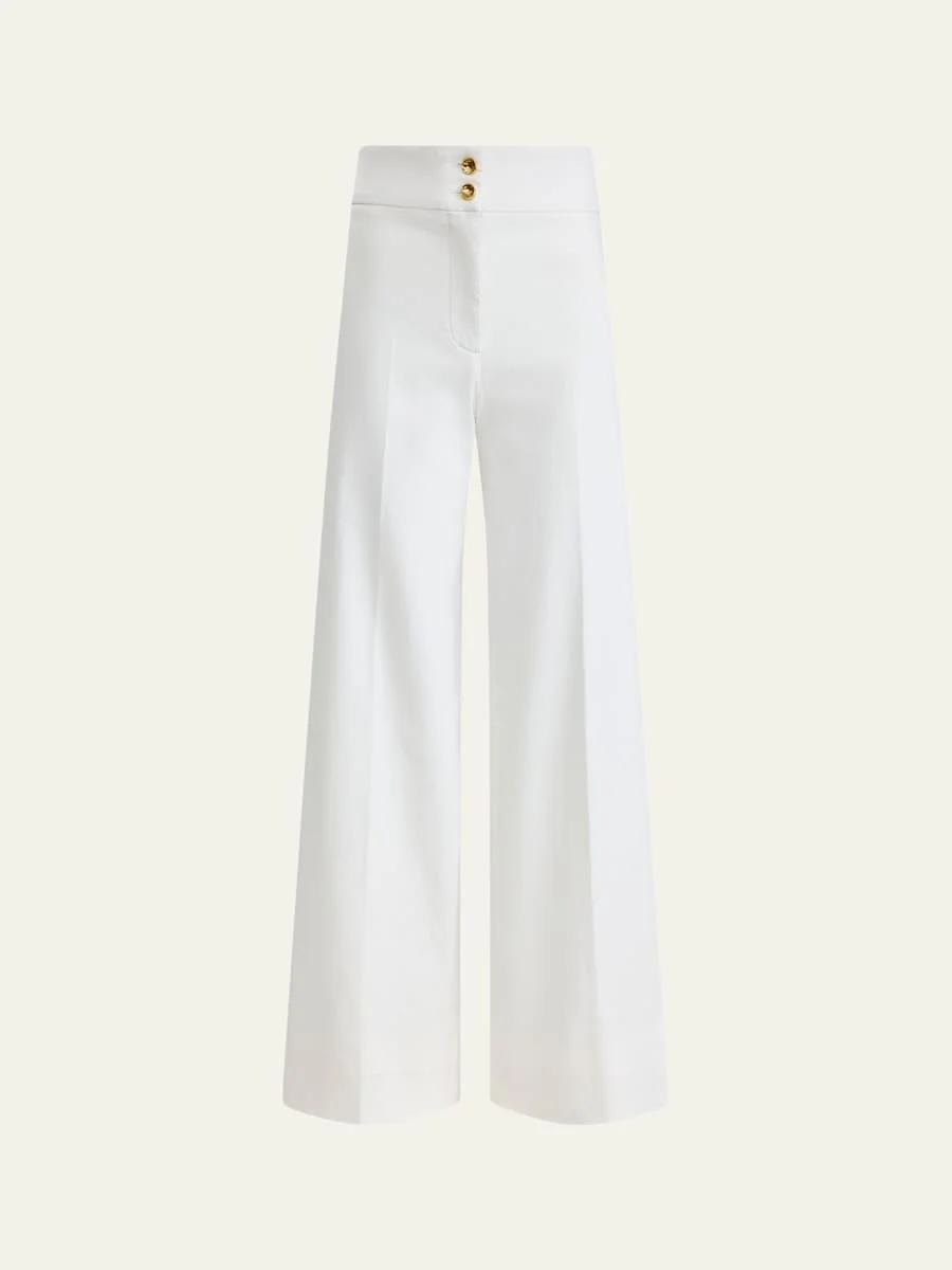Altuzarra "Rudy" crisp cottonblend pants finished with a wide, smoothing waistband High rise Side seam pockets; back welt pockets Wide legs Full length Twobutton/zip fly Cotton/Lycra® spandex/elastane Dry clean Made in Italy