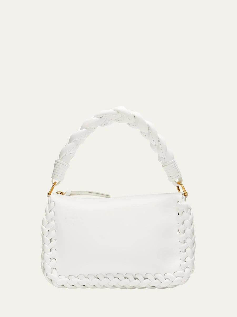 Altuzarra calf leather top handle bag with braided trim Wrapped top handle Removable, adjustable shoulder strap Can be worn as a top handle or shoulder bag Zip top closure Center slip compartment divides interior; one slip pocket Approx. 6"H x 8.5"W x 3"D Made in Italy Online Inquiries: BGS21_V5QA7| Store Inquiries: #4450649