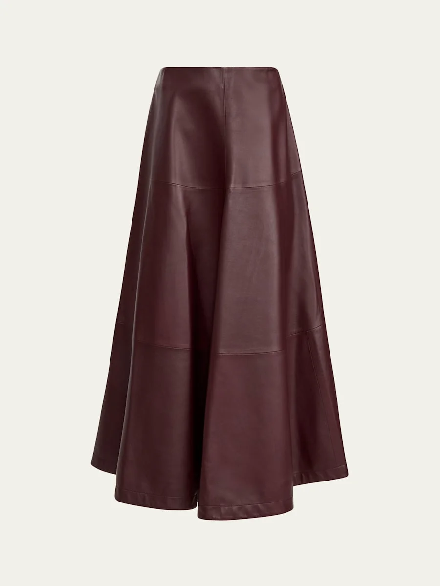 The "Varda" skirt by Altuzarra is designed from panels of lambskin leather and sits at the natural waistline Midrise Hem falls below the knee Aline silhouette Concealed back zipper Leather Professional cleaning recommended Made in Italy