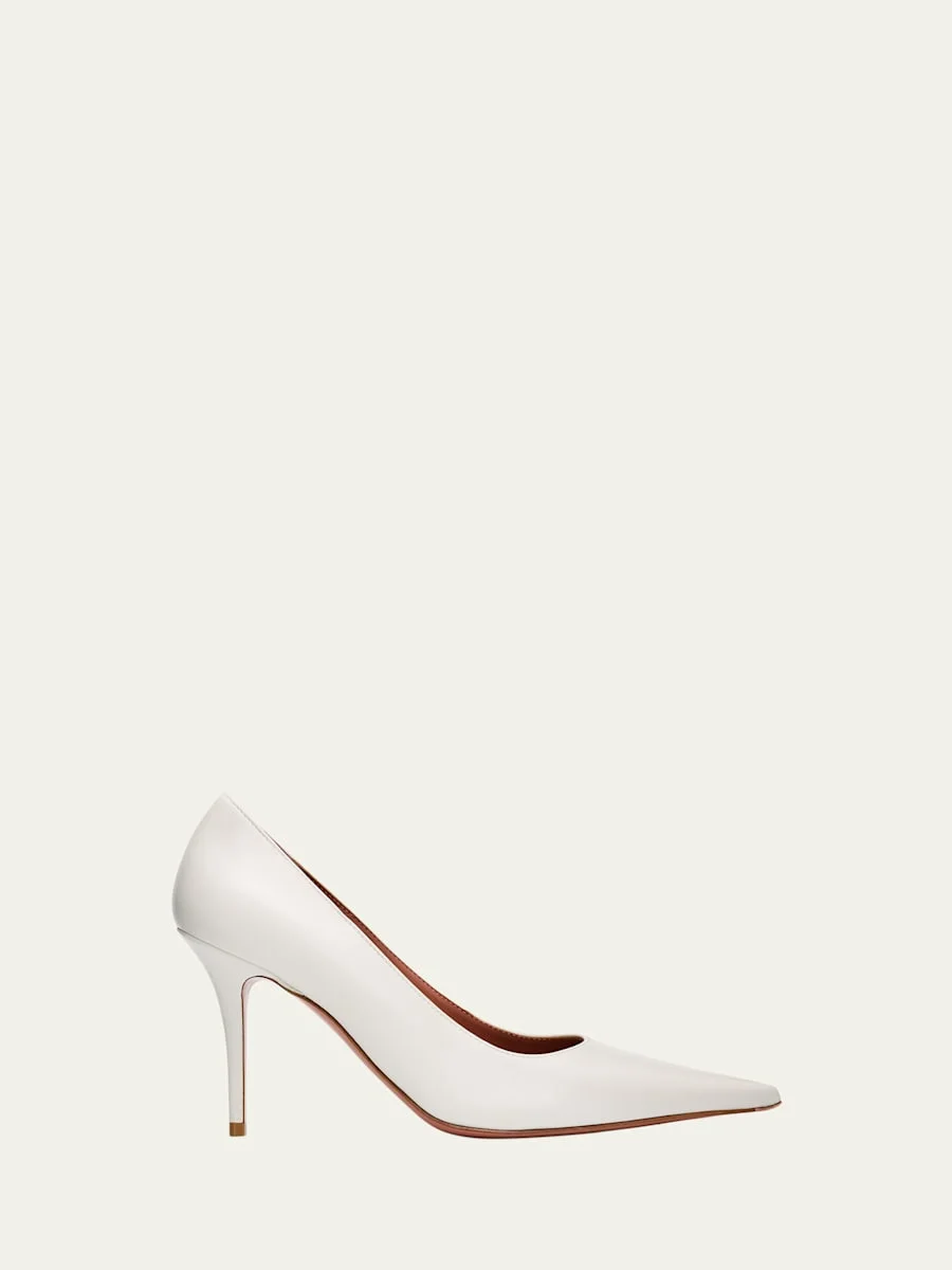 A chic and endlessly versatile silhouette, the "Barbara" pumps by Amina Muaddi are composed of buttery soft lambskin leather 3.50 in / 90 mm covered stiletto heel Pointed toe Slipon style Goat leather lining Leather outsole Made in Italy