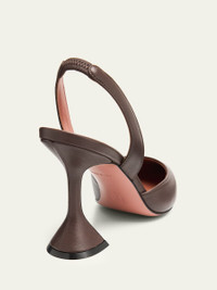 A signature Amina Muaddi silhouette, this version of the "Holli" pumps is designed in buttery soft lambskin leather 3.75 in / 95 mm exaggerated pedestal stiletto heel Pointed toe Elastic slingback strap Goat leather lining Leather outsole Made in Italy