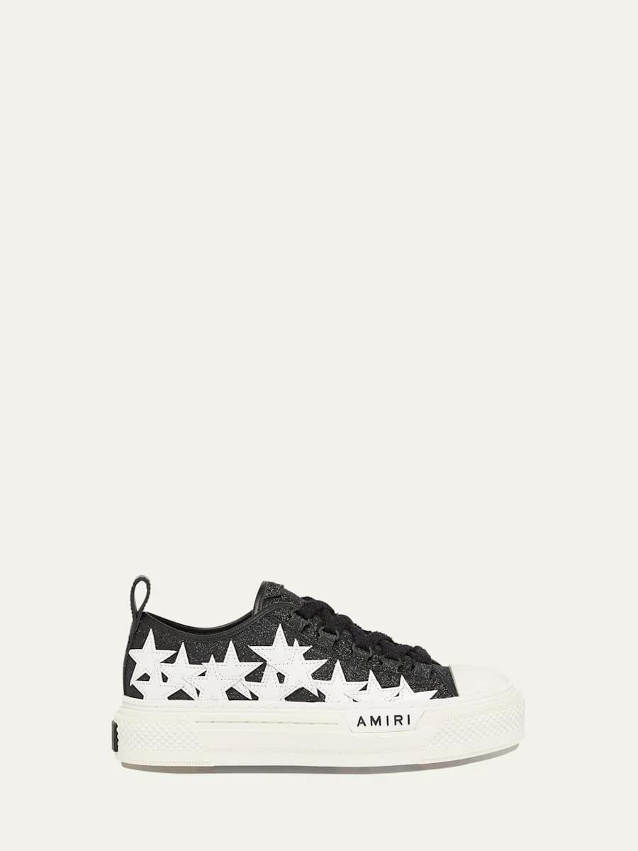Amiri glitter low-top flatform sneakers with contrast, layered leather stars Flat heel Round toe Lace-up vamp Cushioned footbed Lining: Leather Rubber outsole Spot clean Imported Online Inquiries: BGS21_X6TKG| Store Inquiries: #4963240