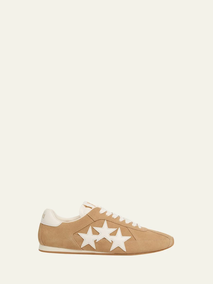 The "Pacific Flat" lowtop sneaker by Amiri is a new house icon inspired by timehonored athletic sneakers and designed in a low, streamlined profile. Crafted of suede and leather, it features the house's signature threestar leather applique on the side. Flat heel Round toe Laceup vamp Monogram logo woven label on the tongue Rubber outsole Spot clean Imported