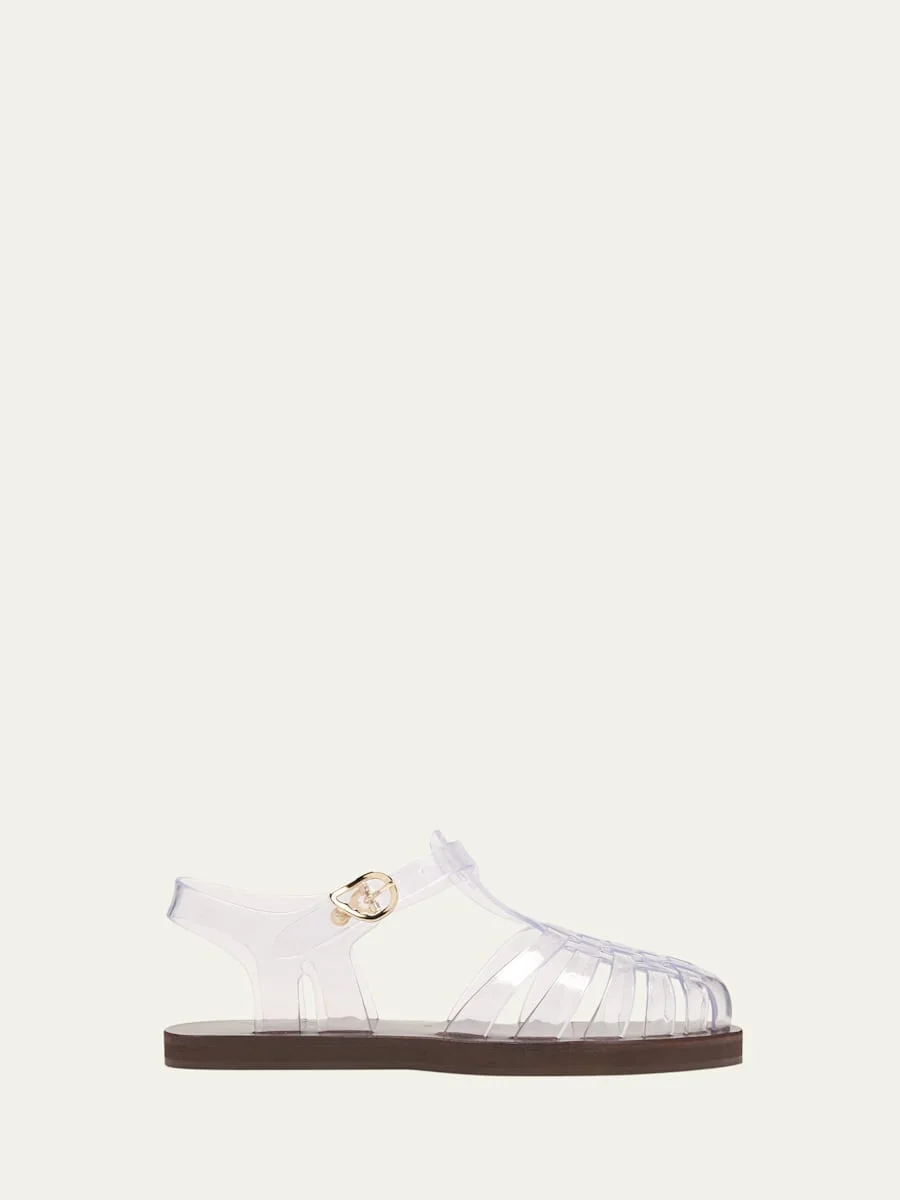 Ancient Greek Sandals "Homeria" clear rubber jelly fisherman sandals 1.25 in / 30 mm flat heel Round toe Caged vamp Adjustable ankle strap Rubber outsole Made in Greece Online Inquiries: BGS21_X6ME6| Store Inquiries: #4823268