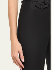 Anna Quan "Juliette" straightleg pants crafted from wool suiting Midrise; sits high on the hip Side slash pockets; back welt pocket Slim fit Cropped length Button/zip fly; belt loops Wool Dry clean Imported
