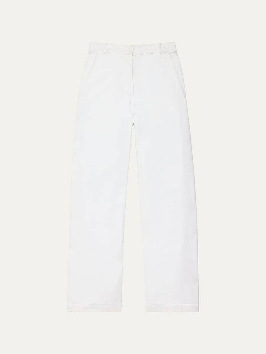 Another Tomorrow carpenter denim pants Approx. measurements: 8.4" rise; 35" inseam; 43.5" outseam Mid rise Side slip pockets; back patch pockets Cropped at the ankle High rise Wide legs Tab/zip fly; belt loops Cotton/elastane Machine wash line dry Made in Italy Model is 5'10"/177cm. Online Inquiries: BGS21_B92A5| Store Inquiries: #4727281
