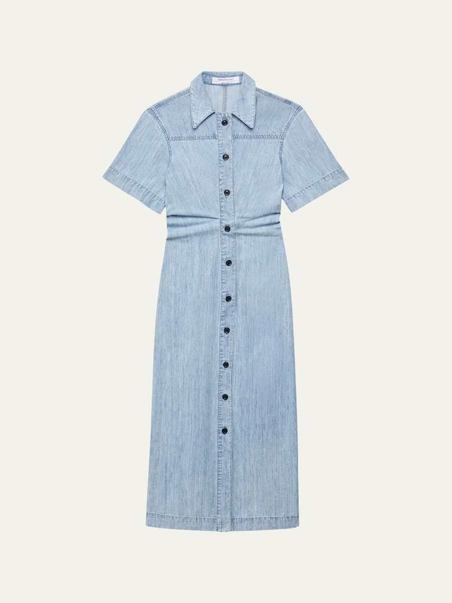 Cotton Chambray Bias Midi Shirt Dress