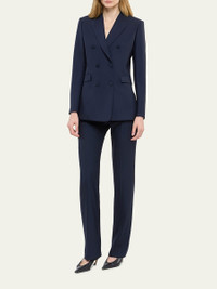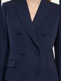 Another Tomorrow blazer jacket with a button-front styling Approx. 29.4" from shoulder to hem Double-breasted front Peak lapel collar Long sleeves Side flap pockets Mid-length Relaxed fit Custom-made ethical merino wool Merino wool Lining: Cupro Made in Italy Model is 5'10"/177cm. Online Inquiries: BGS21_B80JB| Store Inquiries: #4449766