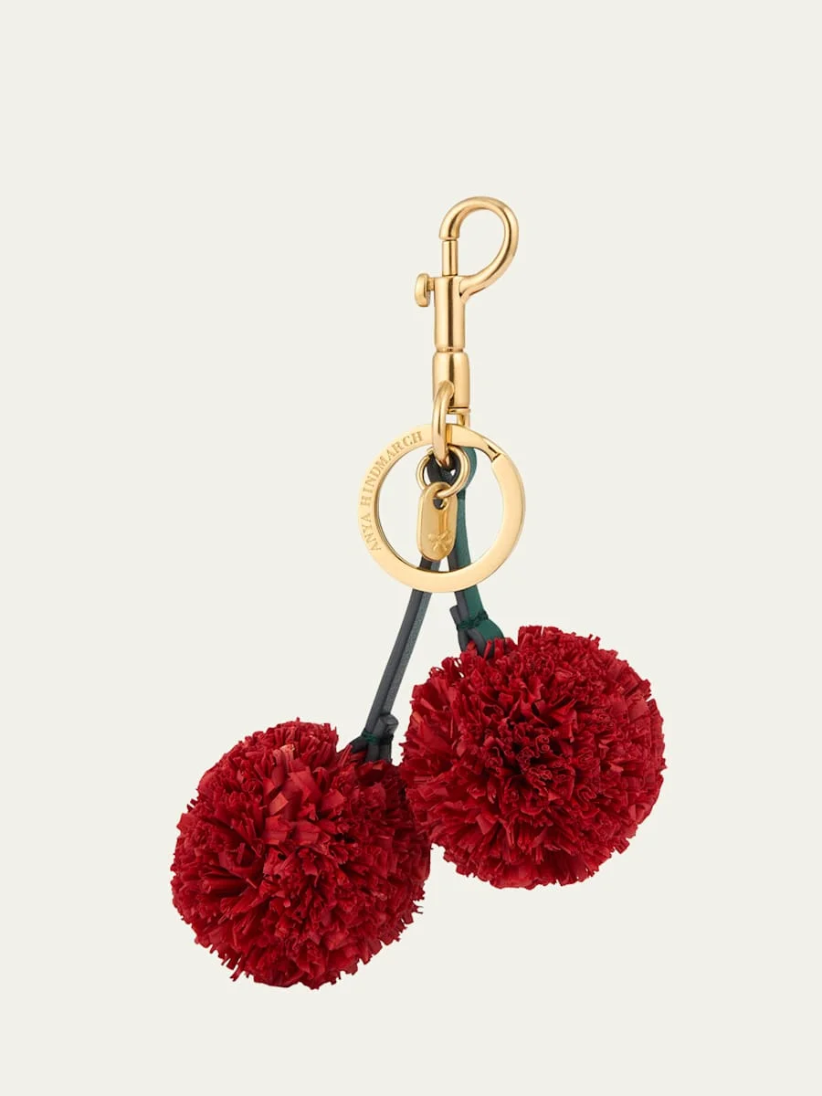 Personalise your everyday tote with the cherries charm – a playful addition by itself, or stacked alongside other bag charms. It features a pair of red raffia cherries, suspended from green circus-leather stalks. Use it as a keyring or attach it to a bag via the golden clasp. Anya Hindmarch cherries charm in raffia and leather Lobster clasp closure Approx. 5.2"H x 3.6"W Imported Online Inquiries: BGS21_Y7GL5| Store Inquiries: #5001314