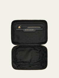 Vanity Kit leather-trimmed jacquard cosmetics case Black