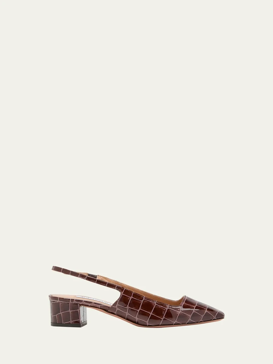 Aquazzura "Ginza" ballerina pumps in crocodile-embossed leather 1.38 in / 35 mm block heel Square toe Adjustable slingback strap Leather outsole Lining: Leather Made in Italy Online Inquiries: BGS21_X6BU8| Store Inquiries: #4655484