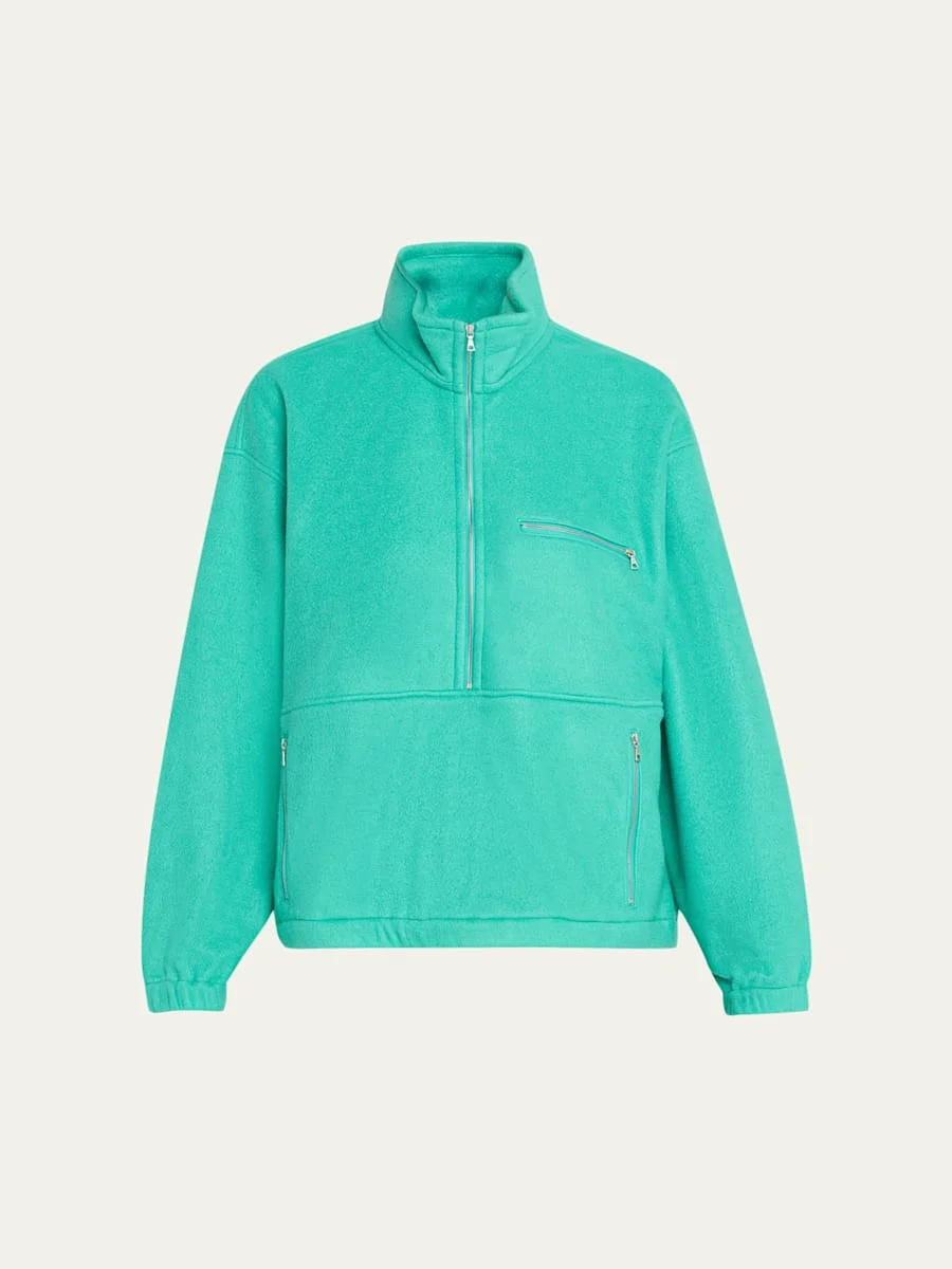 This AURALEE fleece sweater is accented with silvertone zip hardware for added practicality and style. Stand collar Halfzip neckline Chest zip pocket Side zip pockets Dropped shoulders Elasticized cuffs and hem Center back seam Pullover style Polyurethane Made in Colombia