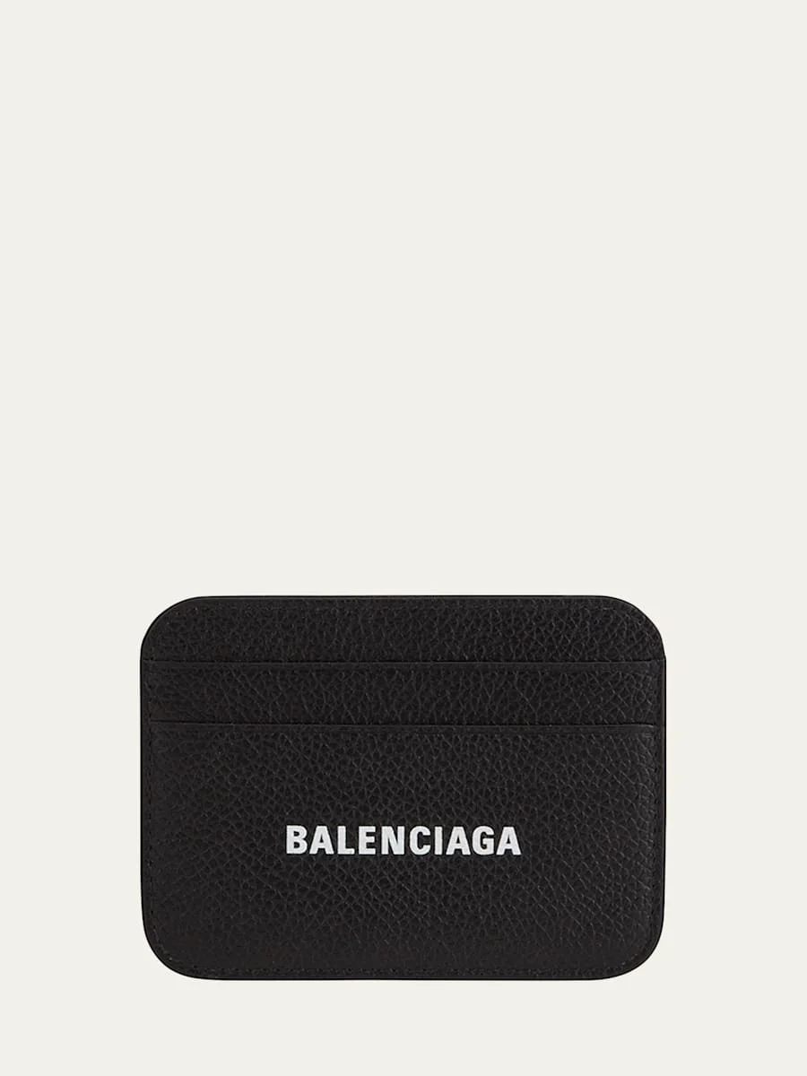 Balenciaga card case in grainy calfskin leather with logo print at center front. Four card slots. 3"H x 3.9"W x 0.4"D. Made in Italy. Online Inquiries: BGS21_D3X1X| Store Inquiries: #4029103