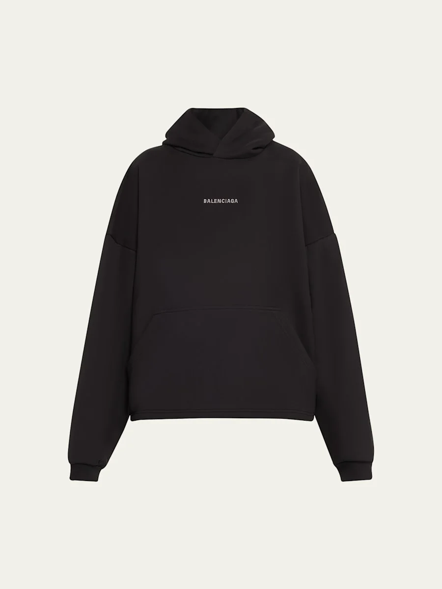 Balenciaga crystal embellished sweatshirt with logo front and back detail Hooded neckline Long sleeves Drop shoulders Front kangaroo pocket Oversized fit Cropped length Banded cuffs and hem Pullover style Cotton Made in Portugal Online Inquiries: BGS21_B9QYN| Store Inquiries: #4947319