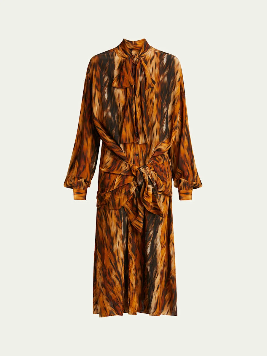 Long Fur Print Knotted Crepe Dress