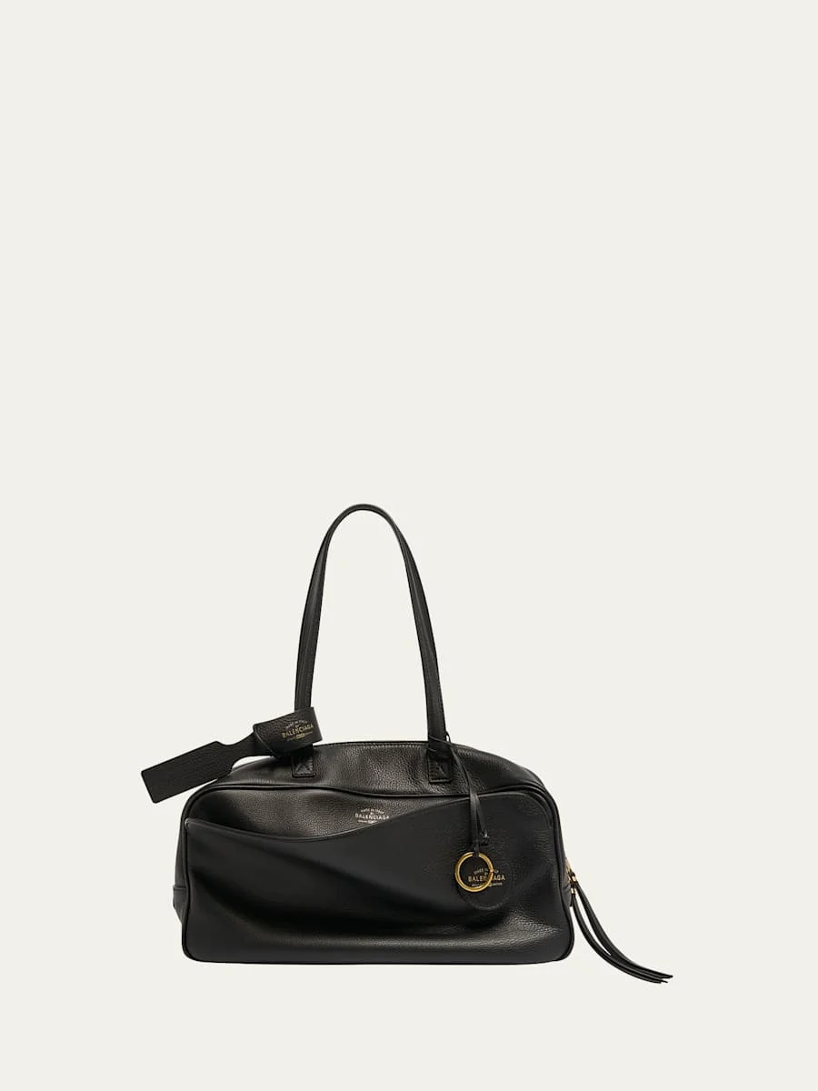 Balenciaga shoulder bag in leather Shoulder strap with logo tag Two-way zip top closure Exterior, one slip pocket Interior, one zip pocket Approx. 14.1"H x 7.4"W x 6.5"D Made in Italy Online Inquiries: BGS21_V6H04| Store Inquiries: #4991288