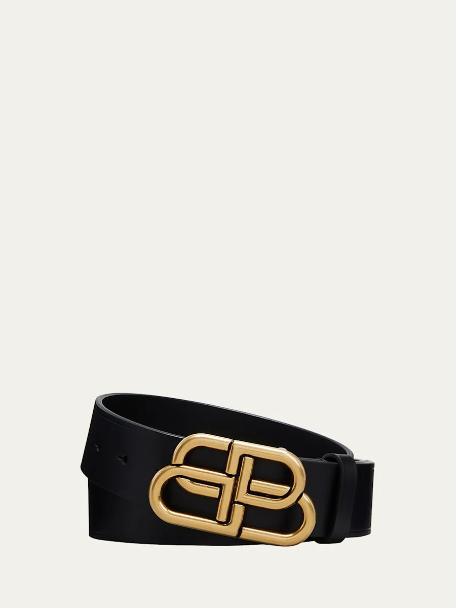 Balenciaga belt in smooth calf leather Gold-tone BB buckle Approx. width: 1.4" Made in Italy Online Inquiries: BGS21_N8C28| Store Inquiries: #4111451