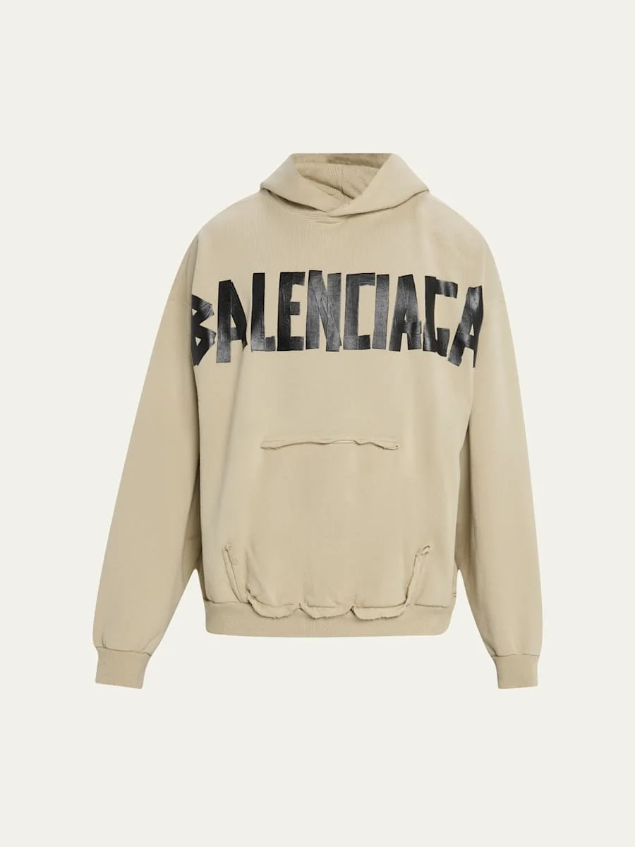 Balenciaga hoodie in cotton defined by edgy tape logos and a ripped pocket effect on the front Hooded neckline Long sleeves Ribbed cuffs and hem Pullover style Relaxed fit Cotton Made in Portugal