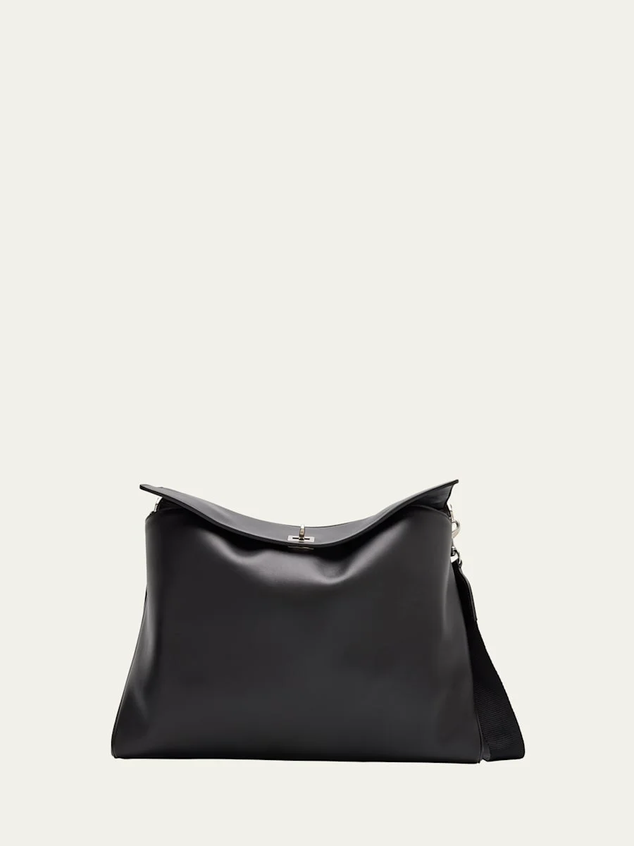 Balenciaga "Rodeo" messenger bag in smooth calfskin with aged-silvertone hardware Adjustable removable webbing strap; 22.8" drop Can be styled crossbody or on the shoulder Turn lock closure Exterior, one wide front pocket, two back flat pockets Interior, one main compartment, one zip pocket Napa lambskin lining Removable cloche cles with two split rings Side snaps Four protective purse feet Approx. 12.4"H x 16"W x 6.3"D Made in Italy Online Inquiries: BGS21_NCTPH| Store Inquiries: #4950751