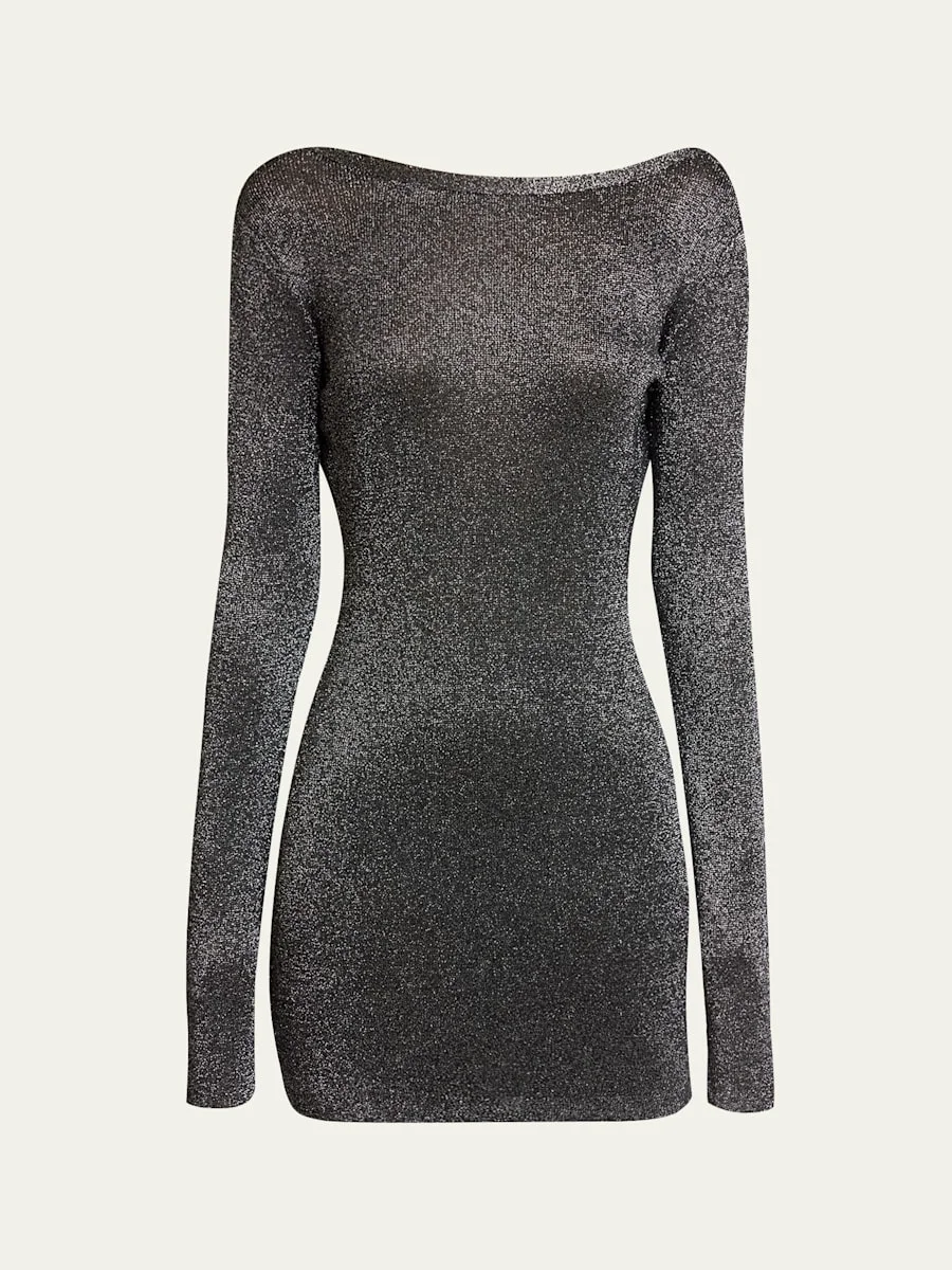 Metallic Knit Long-Sleeve Backless Mini Dress