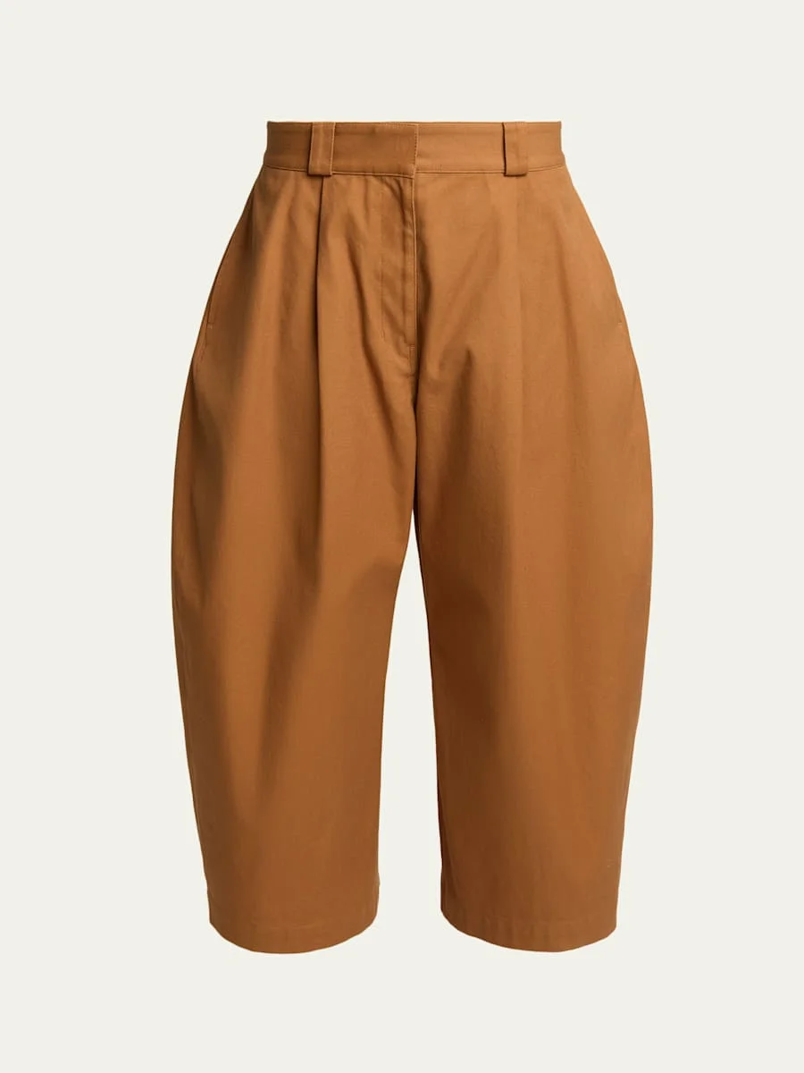 Pleated Barrel-Leg Ankle Bermuda Pants