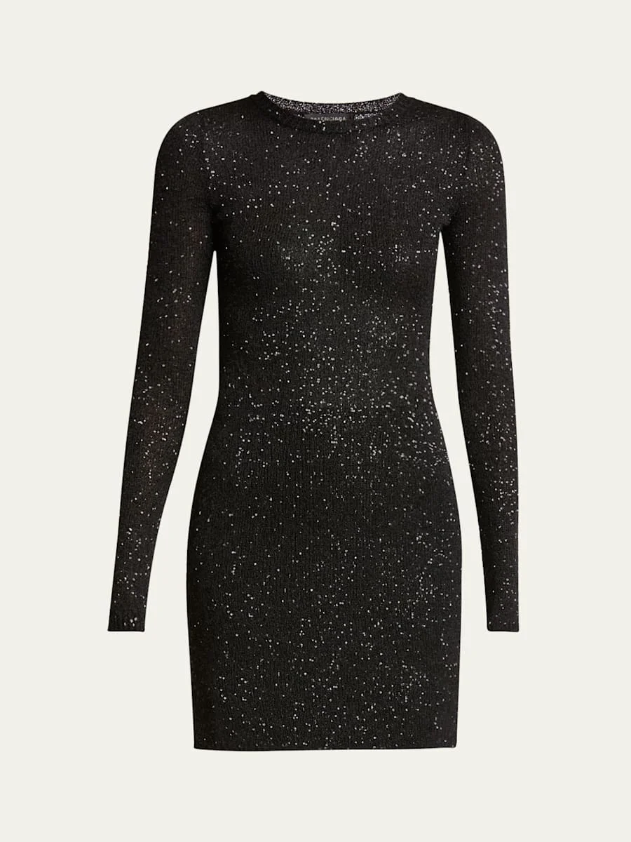 Sequined Knit Mini Long Sleeve Dress