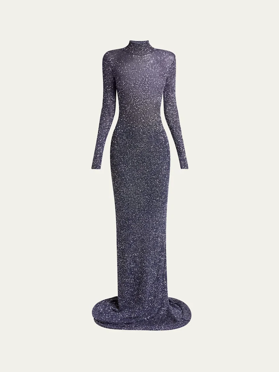 Sequined Mock-Neck Maxi Dress