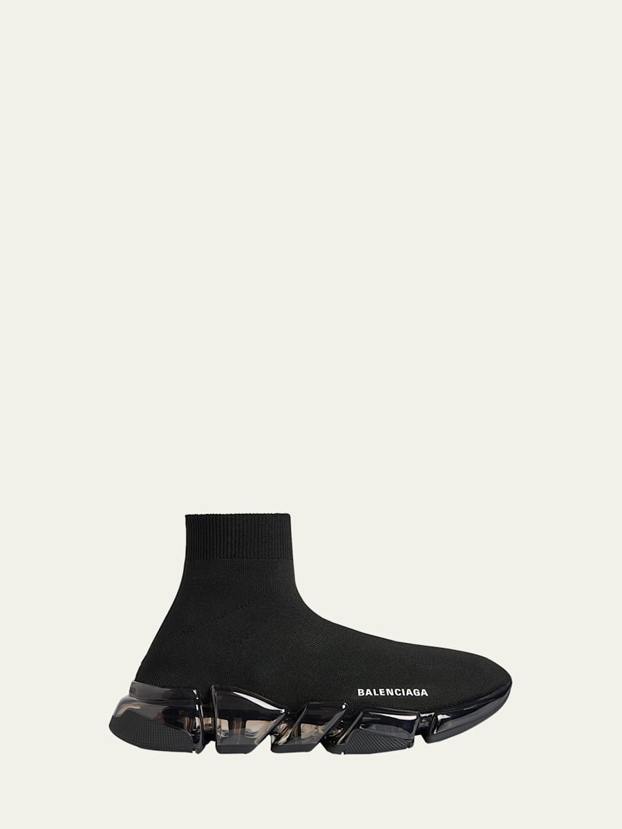 Balenciaga "Speed 2.0 Lt" sneakers with sock-like knit upper Features an extra light, nearly barefoot feel Flat chunky heel Reinforced round toe Ribbed cuff to prevent slipping Graffiti logo lettering at heel Transparent ultra-articulated molded sole unit Pull-on style Rubber outsole Lining: Polyester Made in Italy Online Inquiries: BGS21_X6N5U| Store Inquiries: #4839957