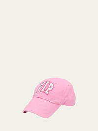 Balenciaga baseball cap with 'VIP' embroidery and subtle distressing throughout Round paneled crown Curved brim Adjustable back velcro closure Cotton/polyester Hand wash, machine wash line dry Made in Portugal Online Inquiries: BGS21_D5B1F| Store Inquiries: #5053469