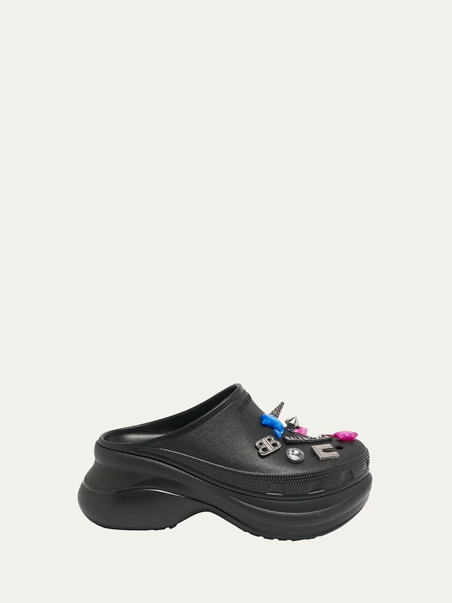 Balenciaga x Crocs™ rubber clog mules with embellished Jibbitz™ 1.50 in / 40 mm platform heel Flat heel Round toe Slides style Rubber outsole Lining: Unlined Imported