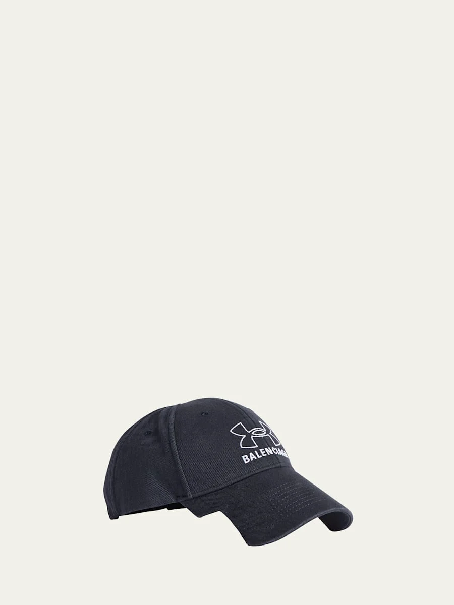 Balenciaga x Under Armour® collaboration baseball cap in cotton drill with a washed-out effect Under Armour artwork embroidered on the front Embroidered eyelets Raw notches on the visor Adjustable back strap Cotton Made in Italy Online Inquiries: BGS21_NCT92| Store Inquiries: #4948668