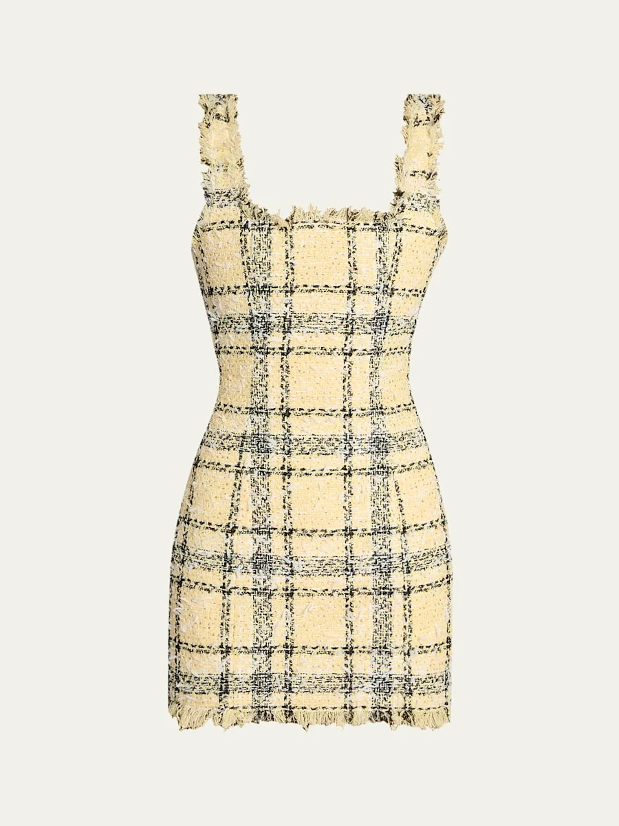 Check Paillette Tweed Sleeveless Mini Dress
