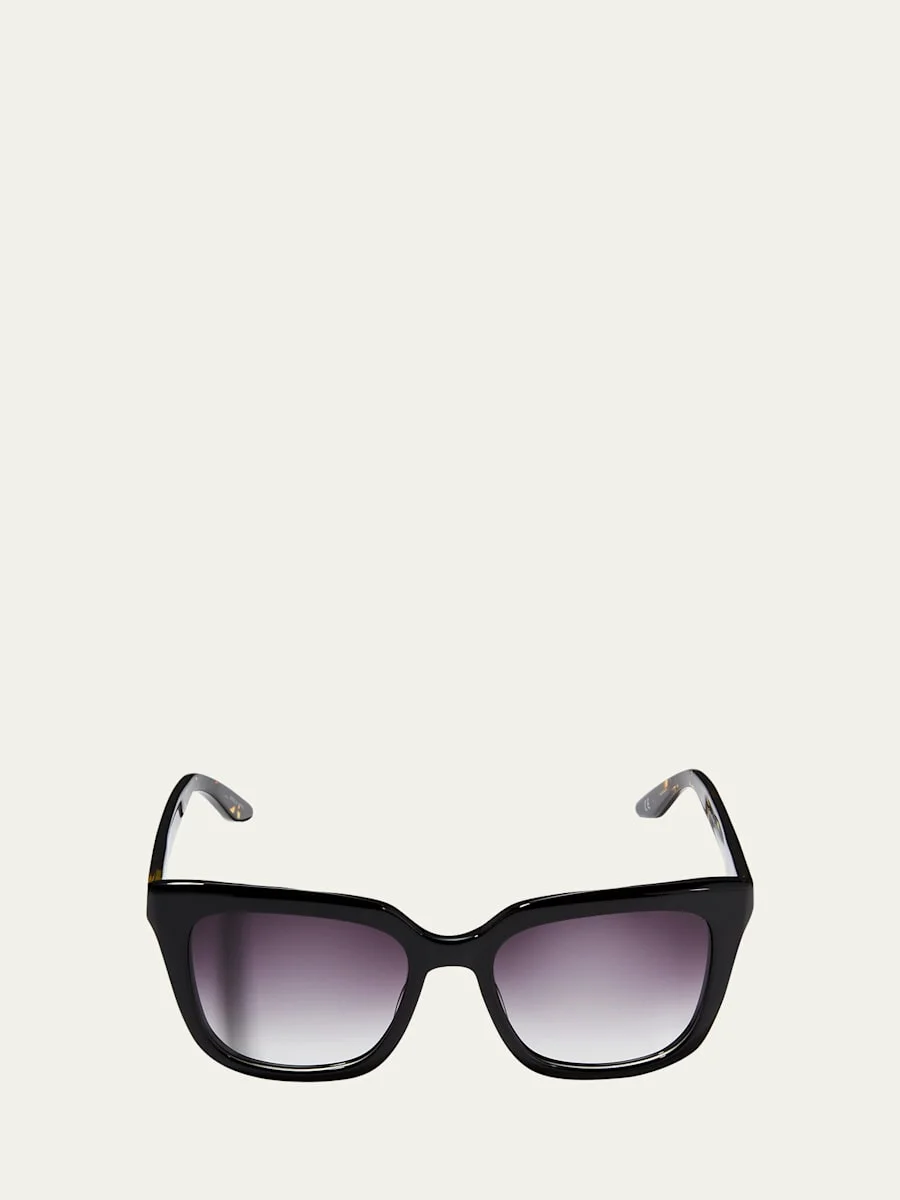 Barton Perreira "Bolsha" rectangle sunglasses in Zyl acetate. Lens/bridge/temple (in mm): 54-19-143. Gradient lenses. 100% UVA/UVB protection. Made in Japan. Proposition 65 warning for California residents Online Inquiries: BGS21_D3AGM| Store Inquiries: #2827737