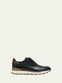 Berluti "Fast Track" low-top sneakers in textile and smooth calf leather Flat heel Reinforced round toe Lace-up vamp Tongue with leather label Raised heel logo Rubber outsole Lining: Leather Made in Italy Online Inquiries: BGS21_NBPLV| Store Inquiries: #4686238