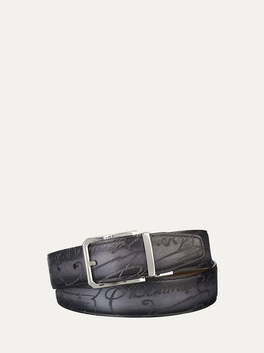 Berluti script writing embossed calf leather belt reverses to smooth interior Adjustable buckle Made in Italy Online Inquiries: BGS21_N7MY5| Store Inquiries: #2813074
