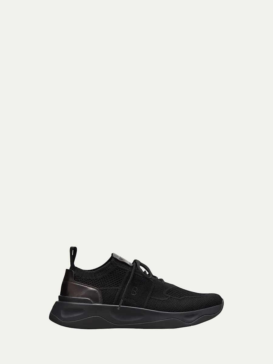 Shadow Leather-Trimmed Stretch-Knit Sneakers Black