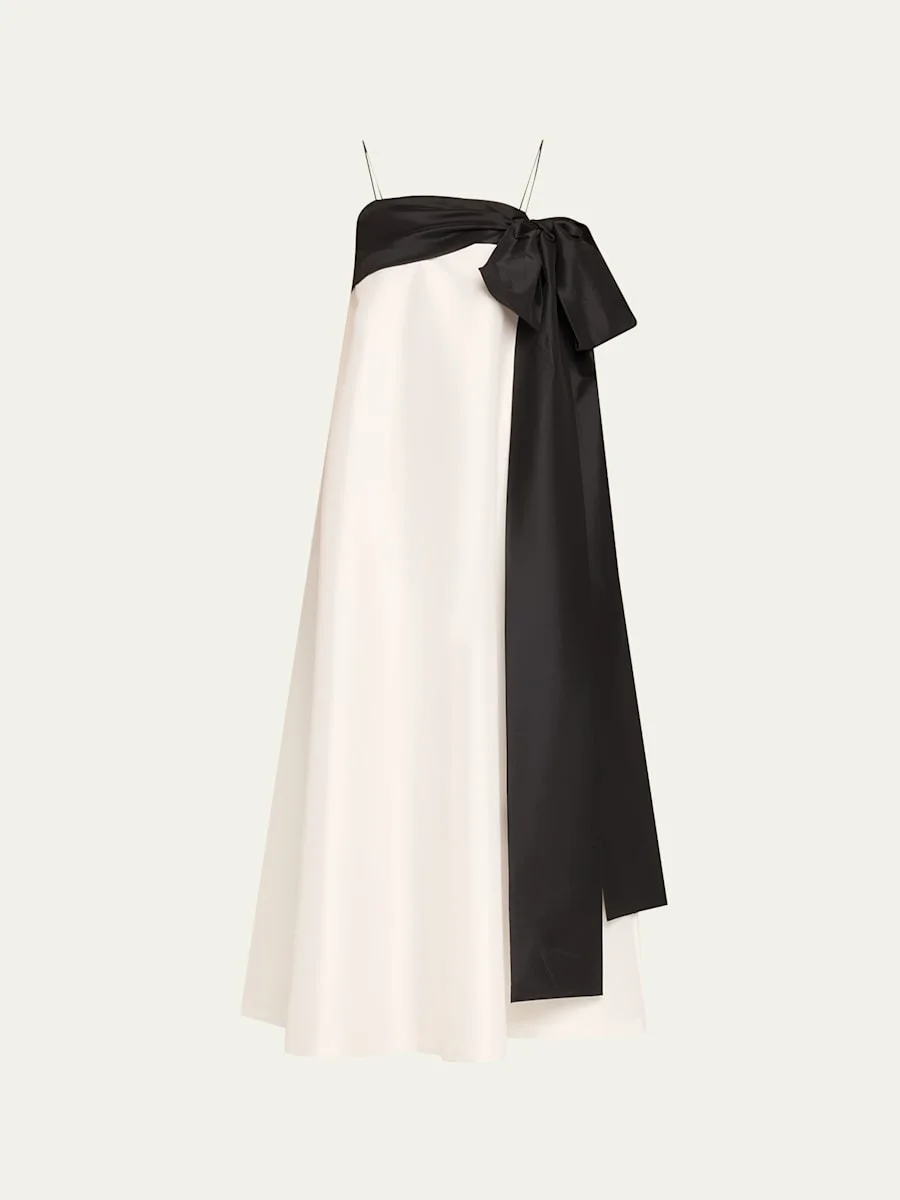 Bailey two-tone bow-embellished taffeta midi dress Ivory